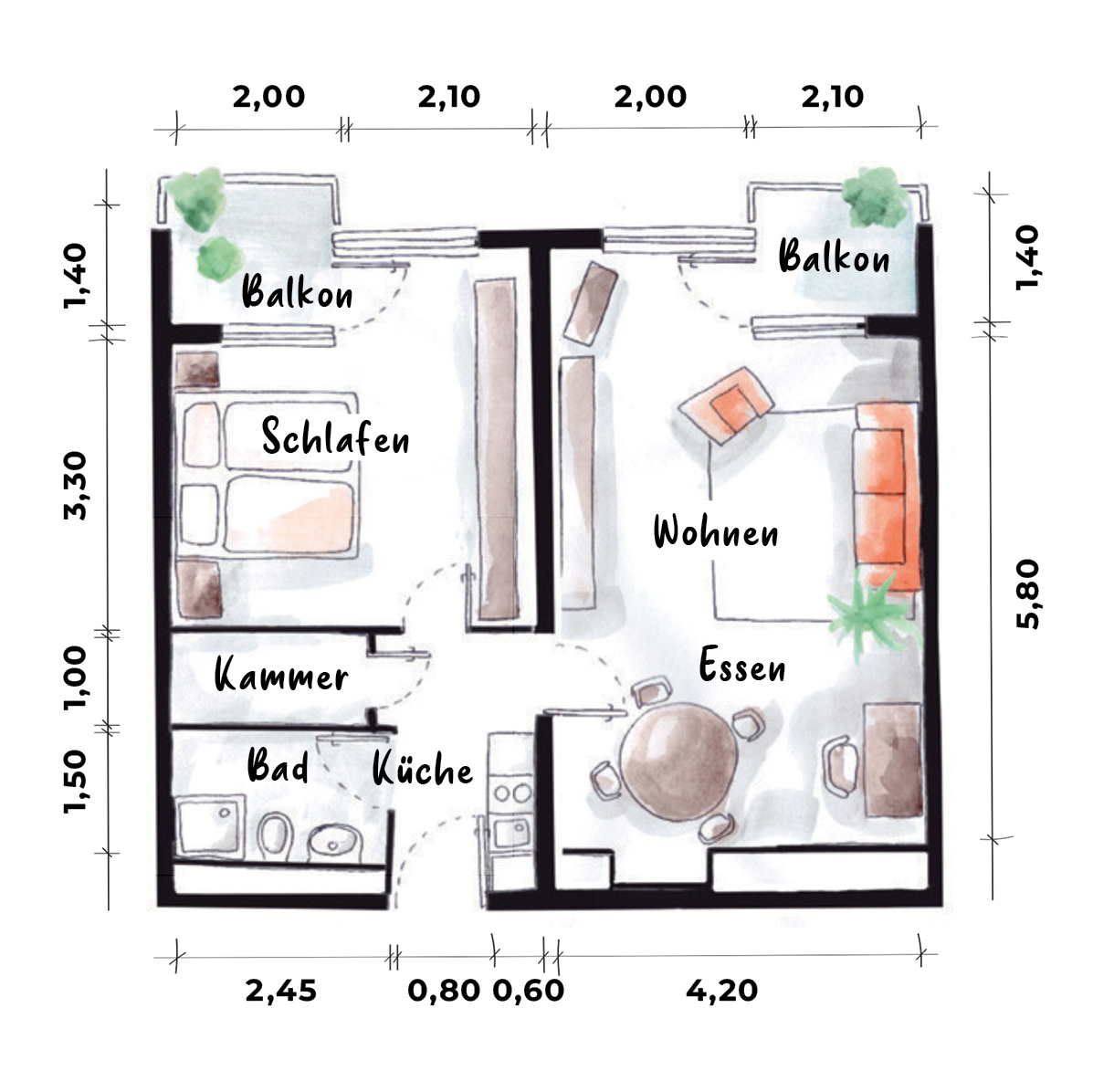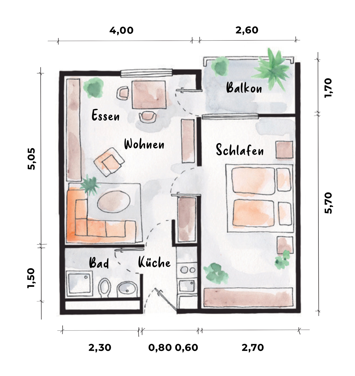 Unsere hellen und modern geschnittenen Apartments bieten genug Platz zum Wohlfühlen.