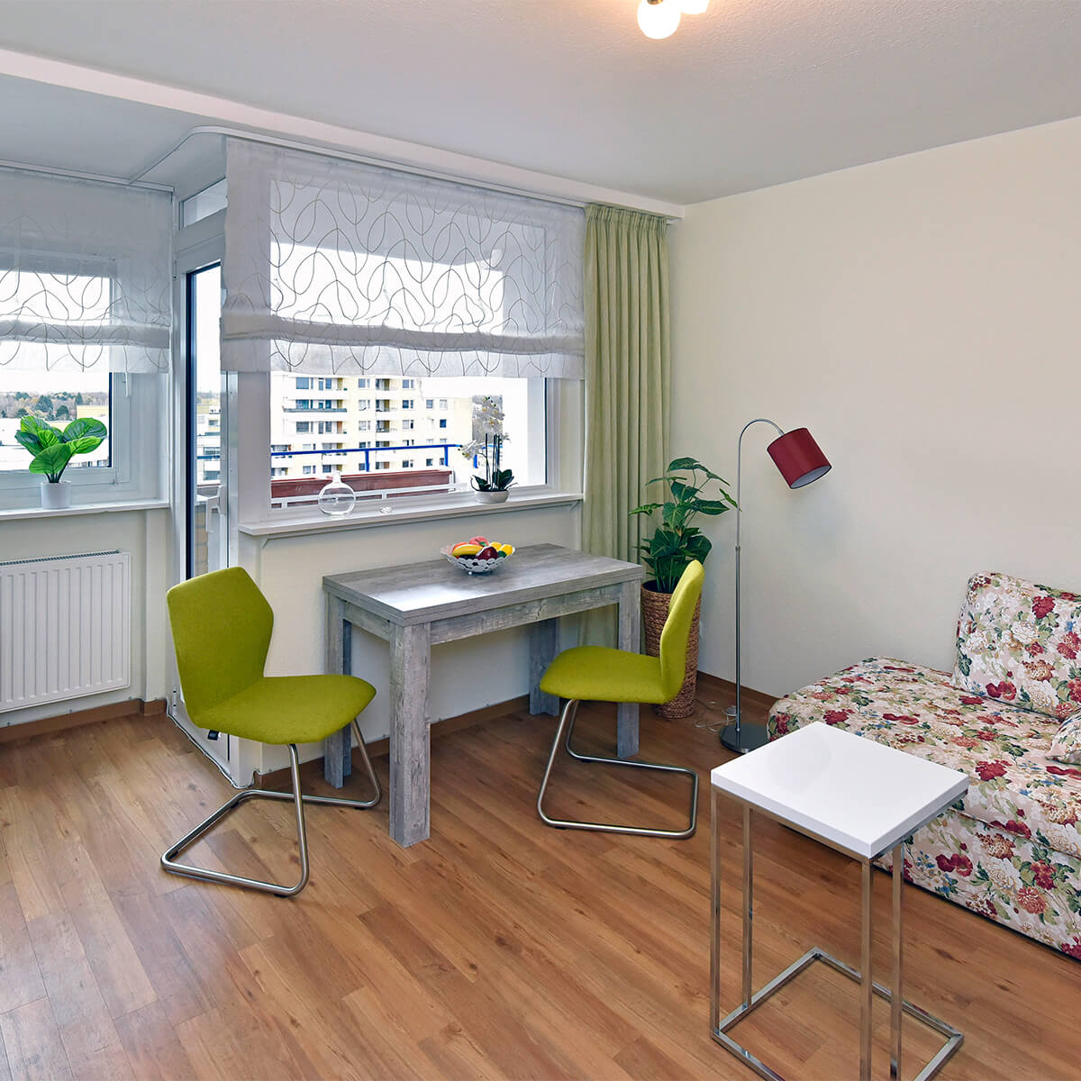 Aufgrund dessen existieren, abhängig vom Apartmenttyp, längere Wartezeiten. Bei 1-Zimmer-Apartments sollten Sie mit einem bis anderthalb Jahren rechnen, bei 2-Zimmer-Apartments beträgt die Wartezeit mindestens drei Jahre. Wenn diese Wartezeiten mit Ihrer persönlichen Planung im Einklang stehen, können wir Sie in unsere unverbindliche Vormerkliste aufnehmen.